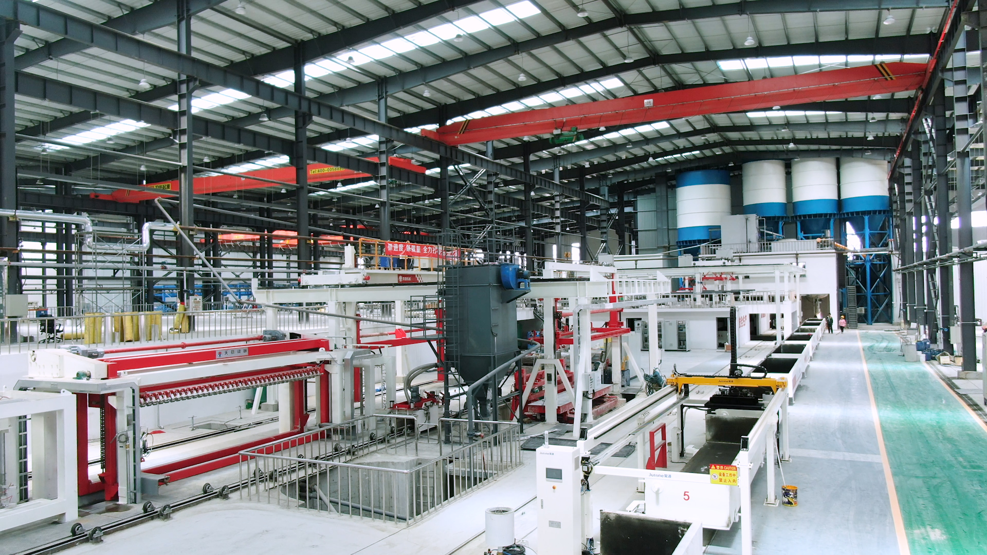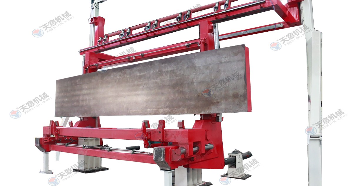 翻轉(zhuǎn)吊機(jī):抓取模箱翻轉(zhuǎn)90°,側(cè)立在切割小車上進(jìn)行切割;切割工段空翻脫模機(jī)將??蚍D(zhuǎn)90°,放在切割小車支座上進(jìn)行脫模,脫模后的??蚺c清理后的側(cè)模板進(jìn)行合模,合膜后的空模框被吊運(yùn)至模具回程軌道上進(jìn)行涂油處...
